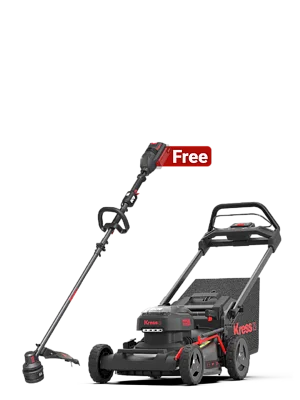 A powerful, gas-free Kress mower built for professional results—now with a free trimmer.*